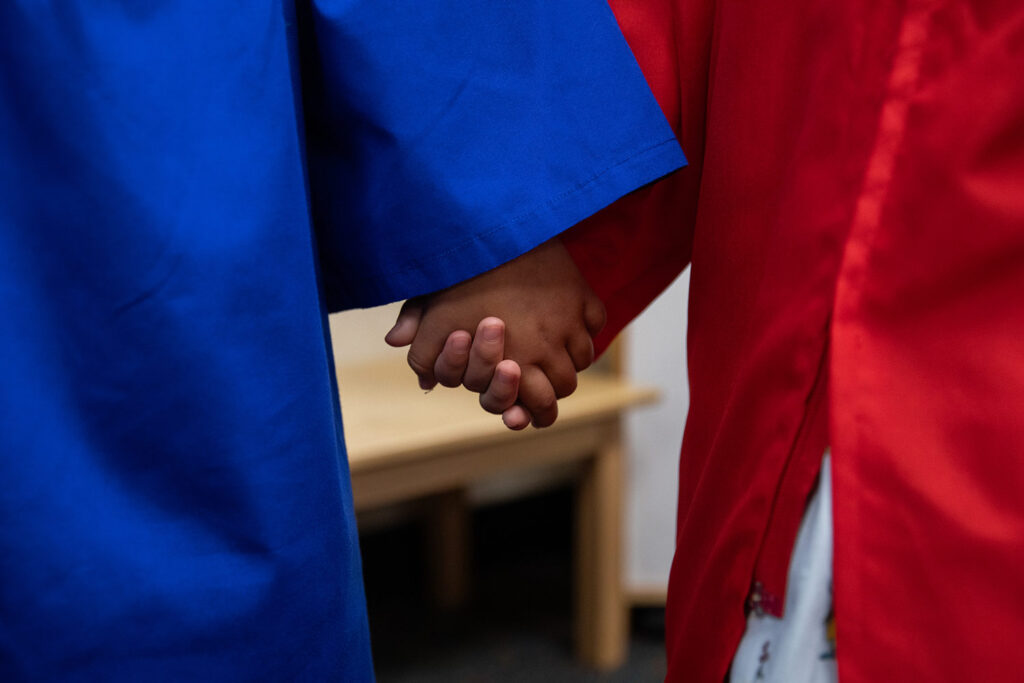 Students participate in a graduation ceremony at Mi Escuelita in San Diego on June 11, 2025. Photo Credit: Adriana Heldiz / CalMatters