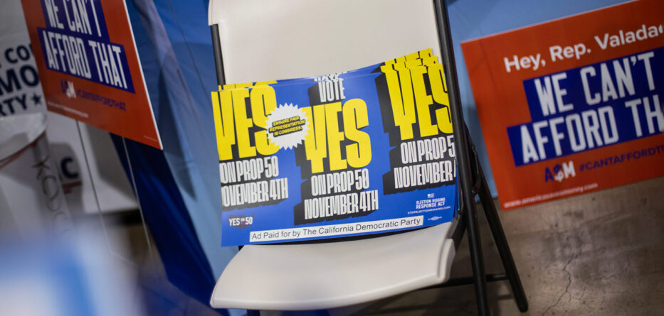 Todavía hay tiempo de sobra para influir en los votantes, especialmente en aquellos que acaban de darse cuenta de que se están celebrando elecciones. Si los votantes aprueban la Proposición 50, California adoptaría temporalmente hasta 2030 los mapas de los distritos elaborados por los demócratas y suspendería los elaborados por una comisión ciudadana independiente de redistribución de distritos hace sólo cuatro años. La pregunta de la papeleta informa a los votantes de que la redistribución de distritos de California es una respuesta directa a la decisión de los republicanos de Texas de redibujar sus líneas de distritos a mediados de la década.